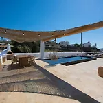 Little Villa amid Super Paradise-JackieO' Mykonos, som ligger ungefär 10 minuter med bil från Fabrica-torget, har en utomhuspool med bar vid poolen för gästernas avkoppling. Villan med 2 sovrum och 2 badrum, som har en uteplats, ligger cirka 10 minuter med bil från Panagia Tourliani kloster.